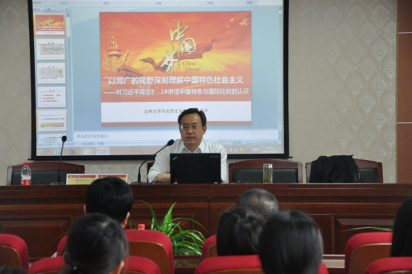 12月18日下午,“中国特色社会主义理论热点问题大讲坛”榆中校区分场第四讲在天山堂C302室开讲。