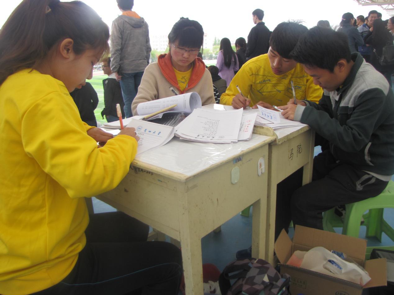 勤劳上进的马院孩子们,在锣鼓喧天的环境中,还在坚持为运动员们撰写加油稿,坚守着寂寞。地方虽小,却挡不住同学们的努力;天气虽冷,却浇不灭同学们的热情。人少也能力齐推山倒,不怕吃苦拾柴火焰高!