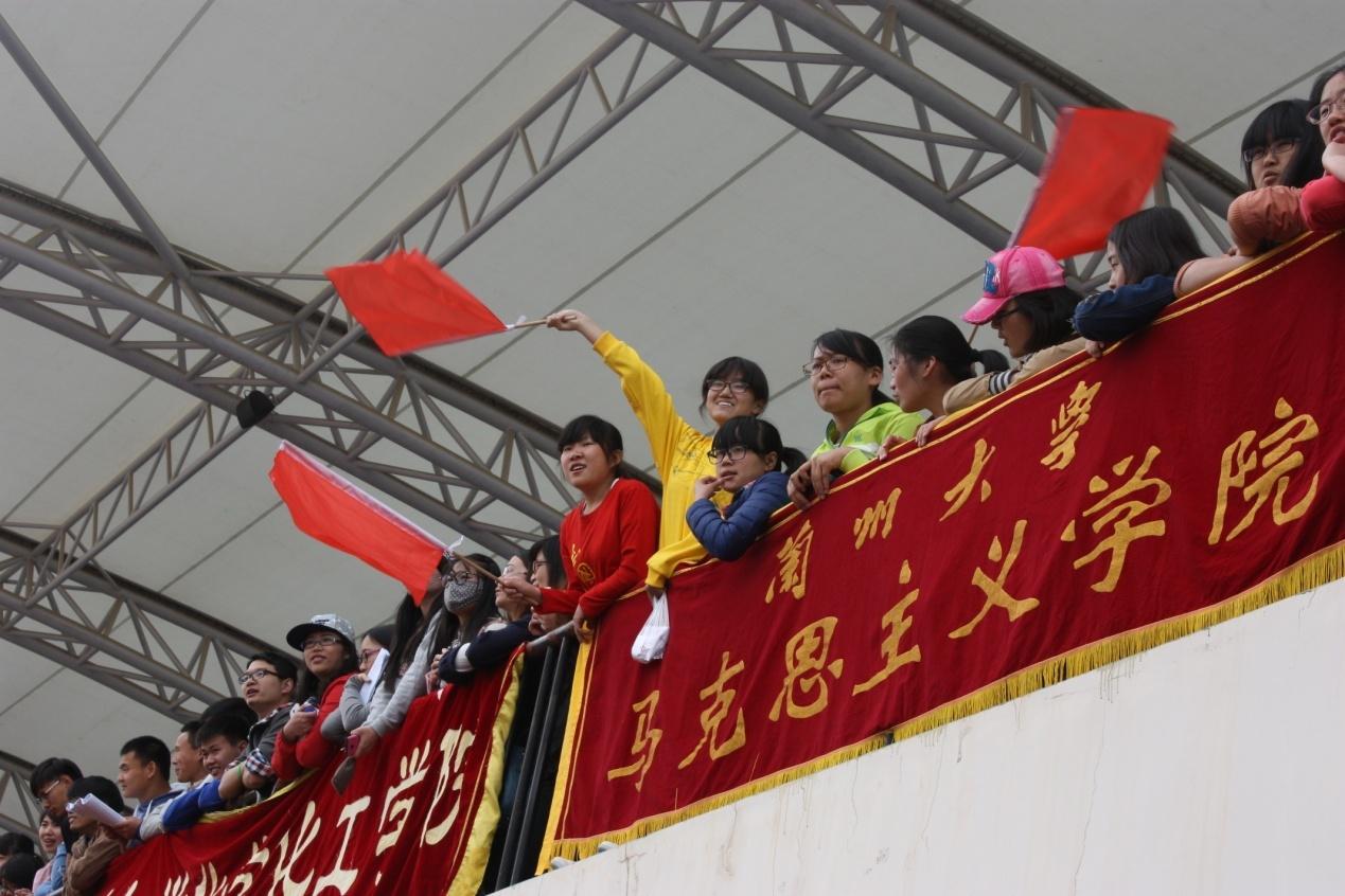 马院看台上有爱的同学们在为运动健儿们摇旗助威,呐喊声震天,豪情万丈。赛场上纵情狂奔的健儿们必将受到你们的感染而奋力拼搏勇往直前!