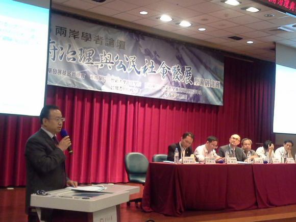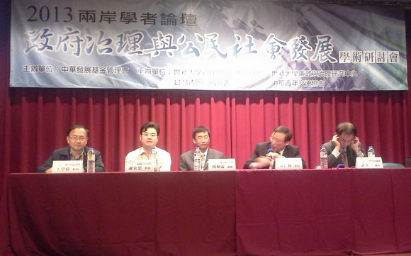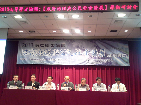 本次“两岸学者论坛”活动的主题是“政府治理与公民社会发展”。本次论坛由台湾“中华发展基金管理会”主办,世新大学管理学院、台湾透明组织协会承办。来自大陆10所大学和台湾地区世新大学、台湾大学、台北大学、政治大学、东吴大学、中央大学、东海大学等高校50多位学者参加了论坛活动,两岸学者围绕“良善治理”、“公民社会”、“廉能政府”三个主题进行了充分的交流和研讨。我校浦京线路检测3522王学俭教授、张新平教授在论坛上分别作了题为“社会转型与创新乡村社会管理”、“政治稳定视野下中国政治和谐稳定发展的基本经验”的专题报告。
