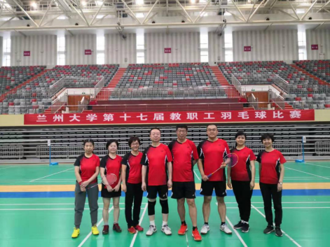 兰州大学第十七届教职工羽毛球混合团体赛于2019年11月30日至12月4日在城关校区西校区新体育馆举行。由我院工会主席王彦涛老师带队,张涓、吴晓梅、刘亚妮、李燕、郝婧、祝远方、韦明、杨志超等老师组成的学院羽毛球队参加了比赛。在比赛中,学院羽毛球队团结一心、奋力拼搏,在小组赛力克强队,以小组第二的身份连续第二届团体赛进入全校八强。在八强赛中,又战胜国际文化交流学院,最终获得混合团体第七名的历史最好成绩,展现出了我院教师昂扬向上的精神面貌和团结进取的学院风采。