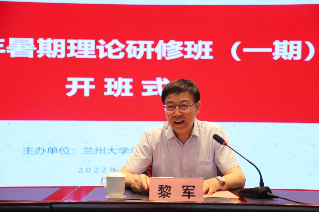 黎军在致辞中代表学院对研修班学员的到来表示诚挚地欢迎,介绍了学院的发展历程及全国高校思想政治理论课教师研修基地(兰州大学)相关情况。他指出,学院党委高度重视本次理论研修工作,积极安排部署,各部门紧密配合,按照培训要求,针对性设计了研修课程,邀请校内知名学者进行专题授课,并充分利用好甘肃这片红色热土的开展实践教学。他强调习近平总书记在中国人民大学考察时的重要讲话精神,是贯穿本次研修的灵魂,希望学员们利用此次学习交流的机会,集中精力,潜心学习,敞开思想,深入交流,加强政治素养和自身理论修养,创新思政课教育教学的新思路、新模式、新方法。